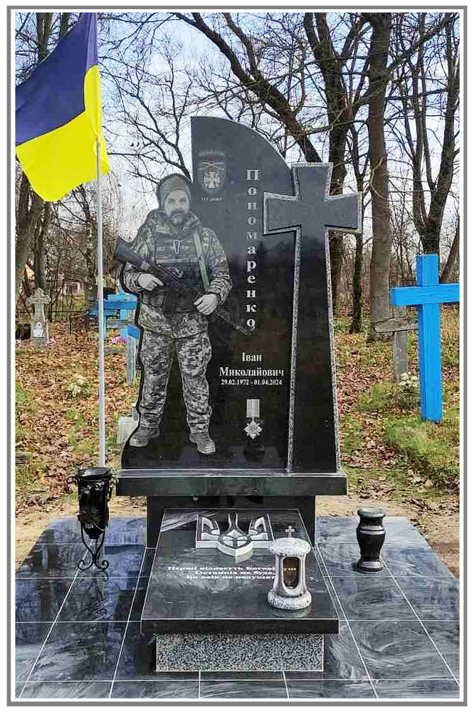 / Гранітний пам'ятник військовому з чорного і сірого граніту з хрестом